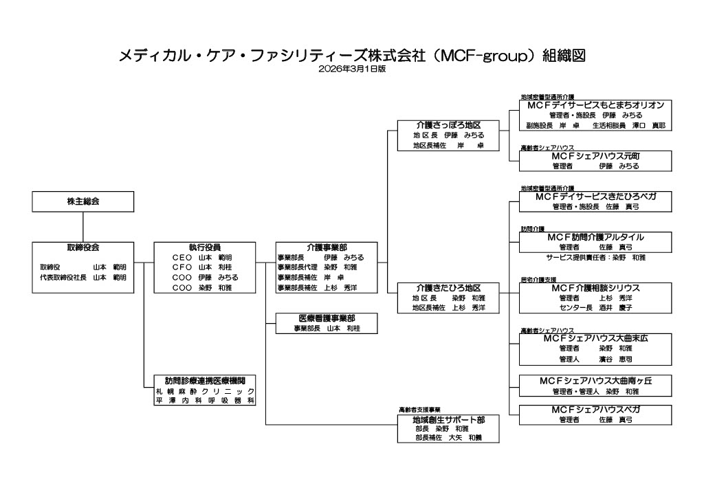 メディカル・ケア・ファシリティーズ株式会社(MCF-group)組織図